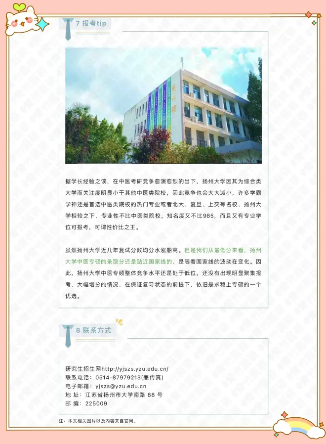 哈喽小竹子们~青竹医研24考研院校介绍系列开始发布。今日为大家介绍的是,【扬州大学】,点赞收藏不迷路~P1:扬州大学 学校简介P2:扬州大学 重点学科P2-P3:扬州大学 部分宿舍图片P4:扬州大学 招生专业目录(24考研专业目录未出,大家可以参考23考研的~)扬州大学 近六年复试线P5:扬州大学 学费&奖学金P6:扬州大学 报考tip扬州大学 联系方式持续更新各校简介,点赞收藏不迷路~