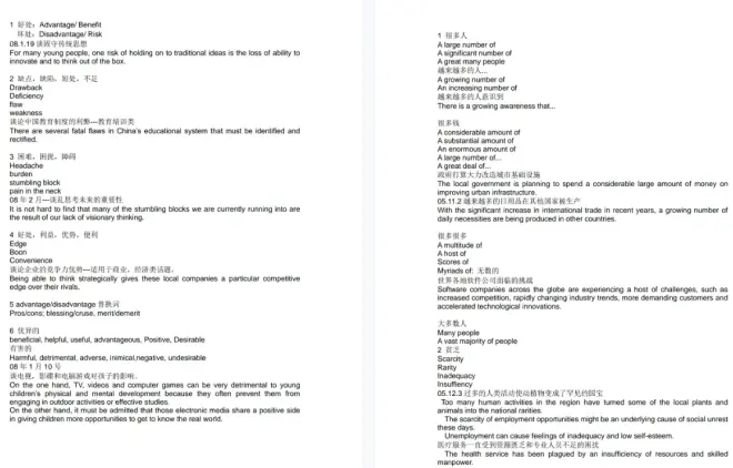雅思作文替换词汇包括利弊类、大量和稀缺、角色和功能、影响和冲击、减轻和加重等10个主题。