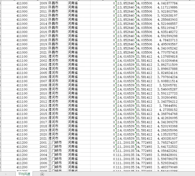 全国各城市平均风速数据(2001-2021年)(可作工具变量)