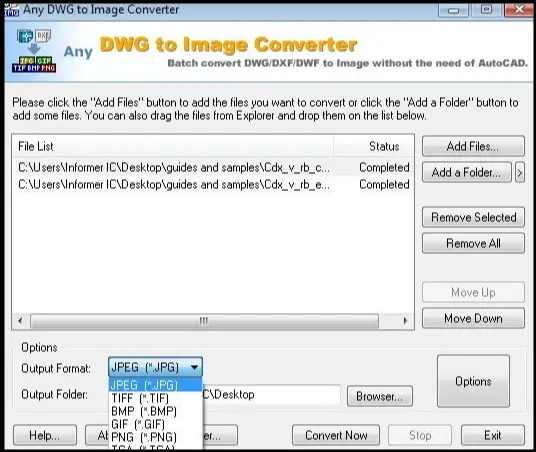 二、Any DWG to Image Converter: Any DWG to Image Converter是一款专门用于将DWG和DXF文件转换为各种图像格式的软件。它支持JPG、BMP、PNG、GIF和TIFF等常见格式。除了将CAD文件转换为JPG格式,它还可以方便地将文件转换为其他格式。