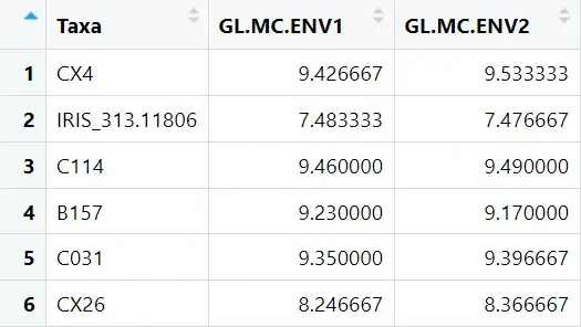 基因型文件为hmp格式,表型文件为txt格式,读入数据结构如下。