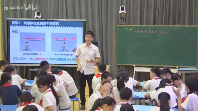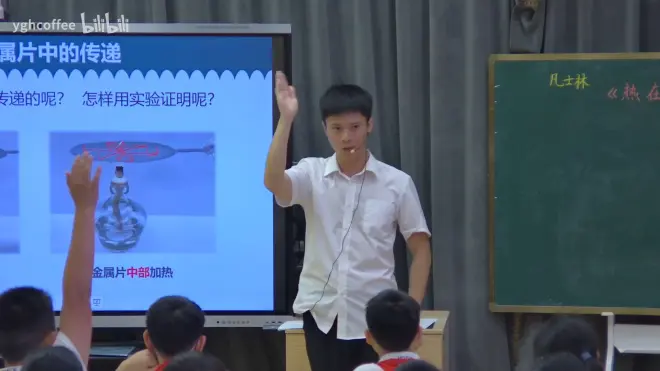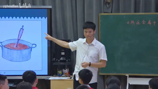 用生活中的故事“勺柄变热”导入,唤起学生的兴趣的同时成功导入本节课的课题。