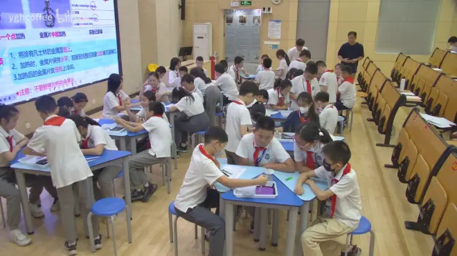 学生在做实验时,教师巡堂并及时处理问题和表扬学生。学生参与的积极性高。