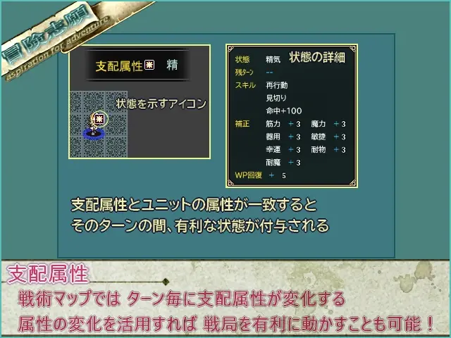 戦術マップでは、「支配属性」と呼ばれる値が毎ターン変化します。