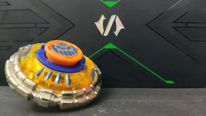 首先,第一款肯定是我们主角的烈风圣翼啦。这款陀螺怎么说呢,实力方面是叶枫前三代初始系列最强,不管是攻击还是卸力都有不错的表现,是典型的平衡型陀螺。他的槽点嘛,先说这个攻击环的设计吧,我能看得出来,设计师是想设计成正装,就像是用剑身把对手的攻击给防御住,然后反装模式下就像是用剑的尖端去刺击敌人,但是吧,这个攻击环它上面的上挑结构貌似是给做反了,使得这完全不像是顺方向的上挑,更像是逆方向的上钩,反转之后就是顺方向的下压。而且这个上钩的部分太薄了,所以很容易打了几局这玩意儿就彻底变形,没法上钩或者下压了(不要问我为什么知道),另外烈风圣翼真的很怕高位压制,一旦遇到这种对局就很容易输,遇到这种高的对手很容易就会被压的攻击环蹭地,然后失去平衡,失去旋转力😂。然后我看到b站上好多人说烈风圣翼在初始系列四主角里面实力不咋强,这个大概是个体差异吧,我的那款初版很强,反正是当时就只用单层比赛的话,我的那一款是真的打败了其他人手里的另外三款初始系列,而且我那一款甚至可以与初版斗战圣佛拼个55开,并且还可以无压力过烈风天翼s和烈风光翼s,而且还是一个攻击环放了好几年快要坏掉的。然后我那款初版的攻击环就因为一场对战碎掉了,后面我是有入一个再版,但我的再版好像有点毛病,感觉它那个重量不稳定,旋转的时候有点摇摇晃晃的感觉,就像重量不稳定😂,就真感觉品控不太行。另外,这里说一下,烈风圣翼有出一个电商特别版,属于换色,跟原版没什么区别。他也是三代里唯一一个有电商特别版的(反正我只找到他的电商特别版,其他我就没见过),另外这里吐槽一下,虽然他在动漫里说是通过接地点来改变属性,但事实上他还是跟光翼一样靠倾斜来改变属性的。