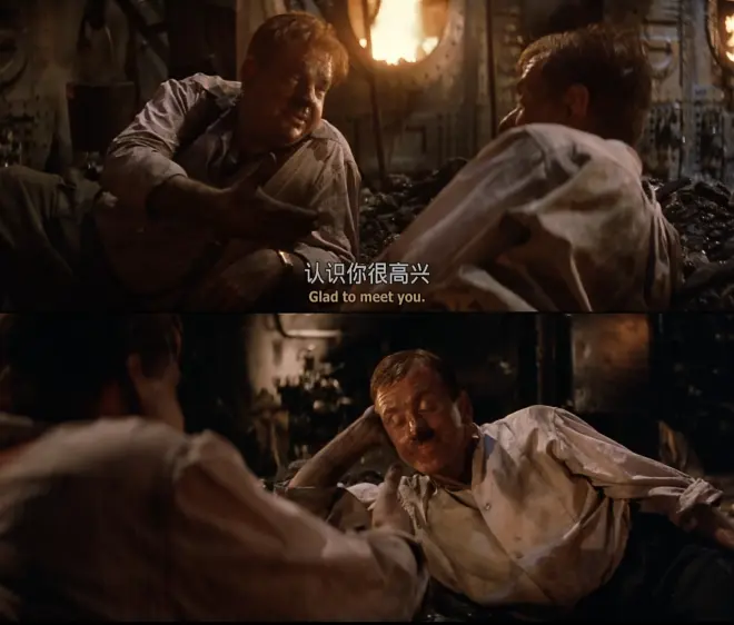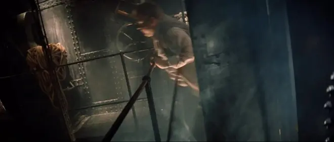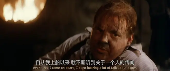 5.在船长的画面空间,后景摇晃的灯不仅符合船上颠簸的现实,还强化他喷怒的情绪。