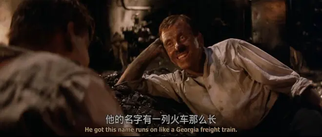 2.画右出现的男人承接叙事,他的话打断Max回忆,然后他把镜头带走,削弱后景Max的存在感和主导权。