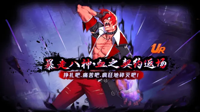 我不相信鬼神, 只要能掌握自己的命运,我便是神, 暴走八神·血之契约返场, 极限流空手道,无敌之龙,随时奉陪! 坂崎良·极限返场降临; 我们即将于7月26日7:00-10:00 进行全服停机更新, 停机更新期间馆主大大将无法登录游戏。 全服更新完成后,您可获得 200绑钻更新补偿和100绑钻停机补偿, 补偿将在更新当天18:00前发放。 全服更新时间视版本情况调整, 详情请关注最新公告。 活动内容 1 暴走八神·血之契约返场 活动时间:更新后-8月1日22点 活动内容:我不相信鬼神,只要能掌握自己的命运,我便是神,UR级幻装格斗家暴走八神·血之契约返场,参与限时召唤可快速获得!