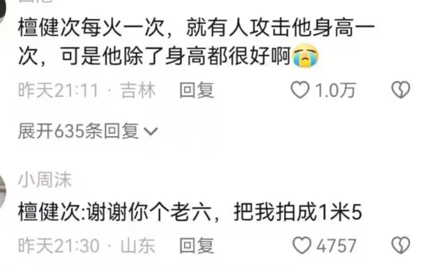 不过有网友则表示,檀健次每火一次,都有人拿他的身高说事,还有完没完了啊!