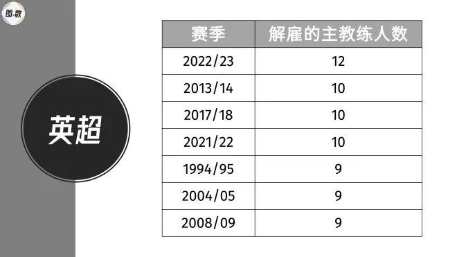 他们俩并不孤独,因为在还剩下10余轮比赛的情况下,本赛季的英超已经有12位主教练被解雇,创下了历史记录,之前最多是单赛季有10名主教练被解职,分别发生在2013-14赛季、2017-18赛季以及2021-22赛季。