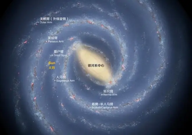 我们将目光看向银河系内部,能看上地球的外星文明。他们的生命形式应该跟我们差不多,就算不一样,他们也得需要水和空气,不然要地球干啥用呢?我们先从地球生命来看,太阳系位于银河系相对边缘的区域,银河系是一个棒旋星系,有四条旋臂,太阳系就处于猎户旋臂上,严格来说这是一条未完工的旋臂。太阳系距离银河系中心大约2.6万光年,如果地球生命地出现原因,是因为地球位于太阳的宜居带上,那么太阳系就是处于银河系的宜居带上。