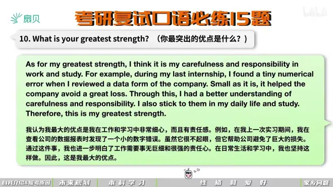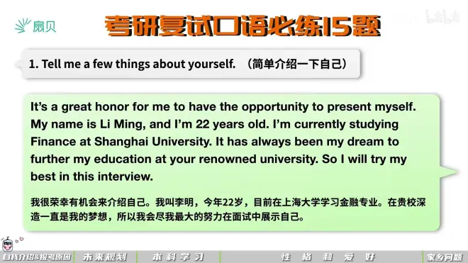 【附模版】考研复试英语口语15题 I 高频必练 I 全英文磨耳朵