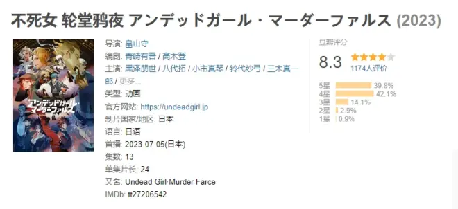 Undead Girl·Murder Farce是Lapin Track制作的电视动画作品,改编自青崎有吾创作的同名小说作品。2023年3月22日,官方宣布制作电视动画片的消息 。