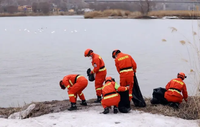 队员们来到兰州市达川镇三江口区域开展学雷锋志愿服务活动,他们分组清理河床垃圾、清除水域危险隐患、投放食物,并提示来此观赏候鸟的游客注意保护生态和珍稀动物,为这些“远方来客”营造舒适的生活环境。三江口是湟水、大通河、黄河交汇地,是一片自然生态环境良好的湿地,每年冬季都会有大量迁徙而来的天鹅、白鹤、白鹭、斑嘴鸭等众多鸟类在此越冬。