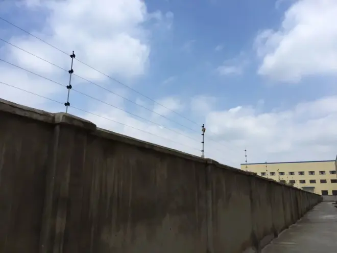 二、电子围栏报警系统;(按照功能特性分为:张力电子围栏系统;泄漏电缆;振动光缆;激光对射等产品。这些产品在市面上应用的还是比较广的。这类产品的优点是误报率低,阻拦、警示效果好,但相应的缺点就是稍微昂贵、施工不当的话容易遭遇雷击、安装效果不如红外美观。
