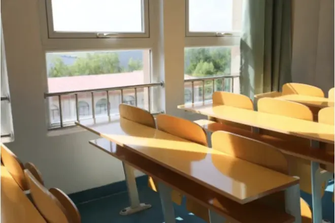 倚窗望去,窗外枝桠蔓延,渐渐在木桌的光影中斑驳生根,为桌上的书本带去一抹绿色。不久之后,这里将充盈起你们的沙沙笔迹、朗朗书声、欢声笑语。