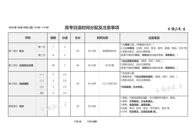 今年高考日语时间:2023年 06月 08日 (四) 15:00--17:00