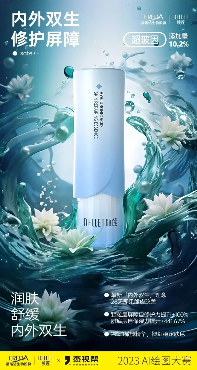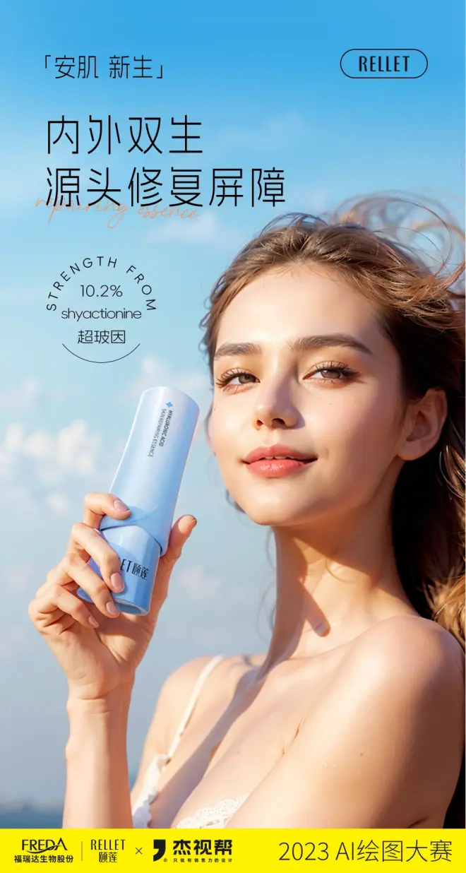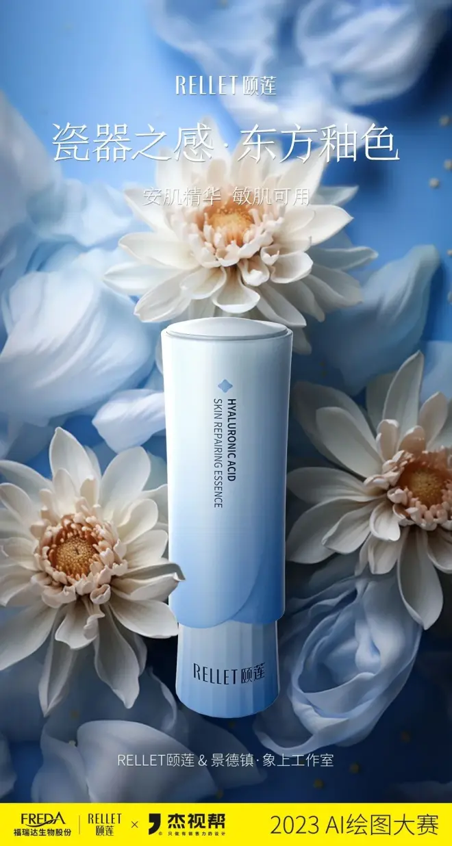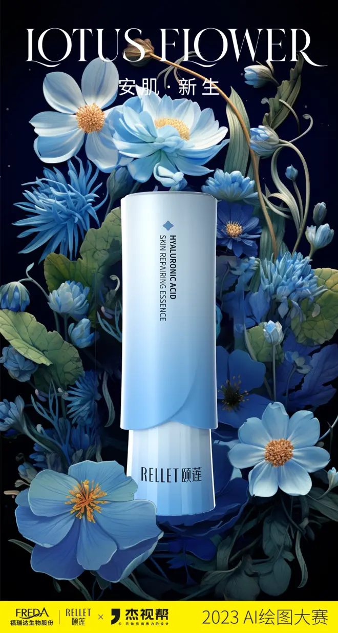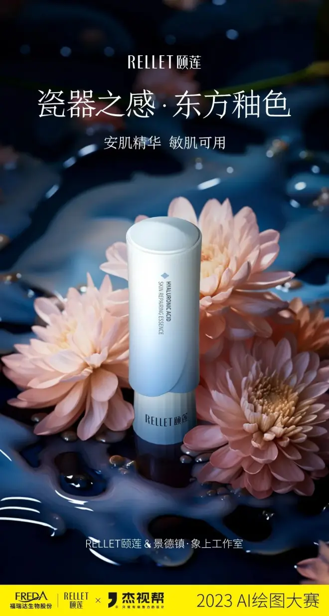 上个月,我们联合颐莲发起了一场AI比赛,围绕颐莲产品“安肌精华”进行商业产品AI海报图创作。经过为期一个月的创作,我们共收到了800+参赛作品!