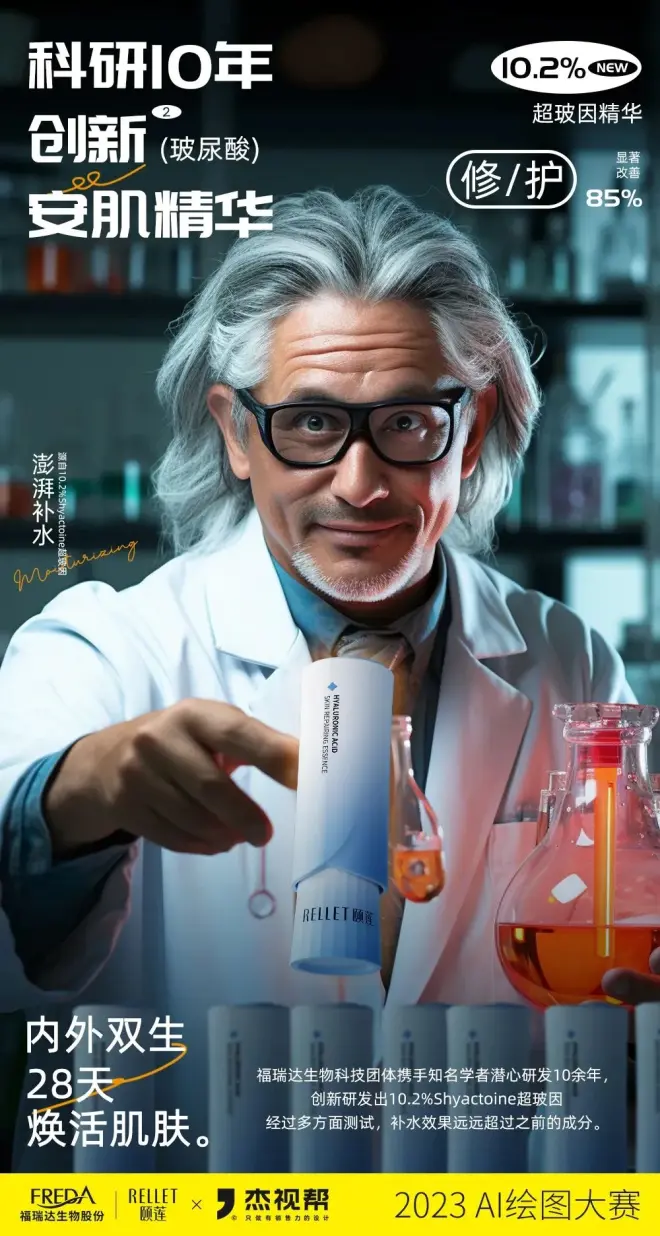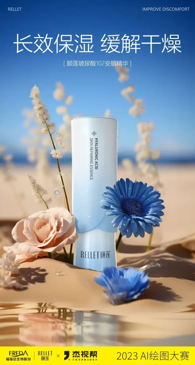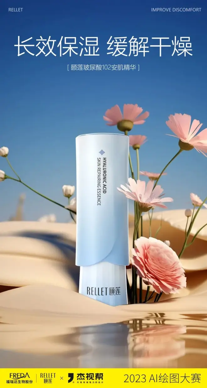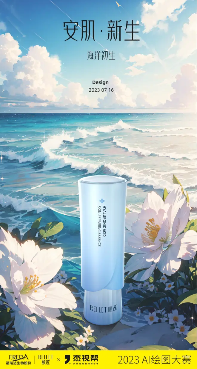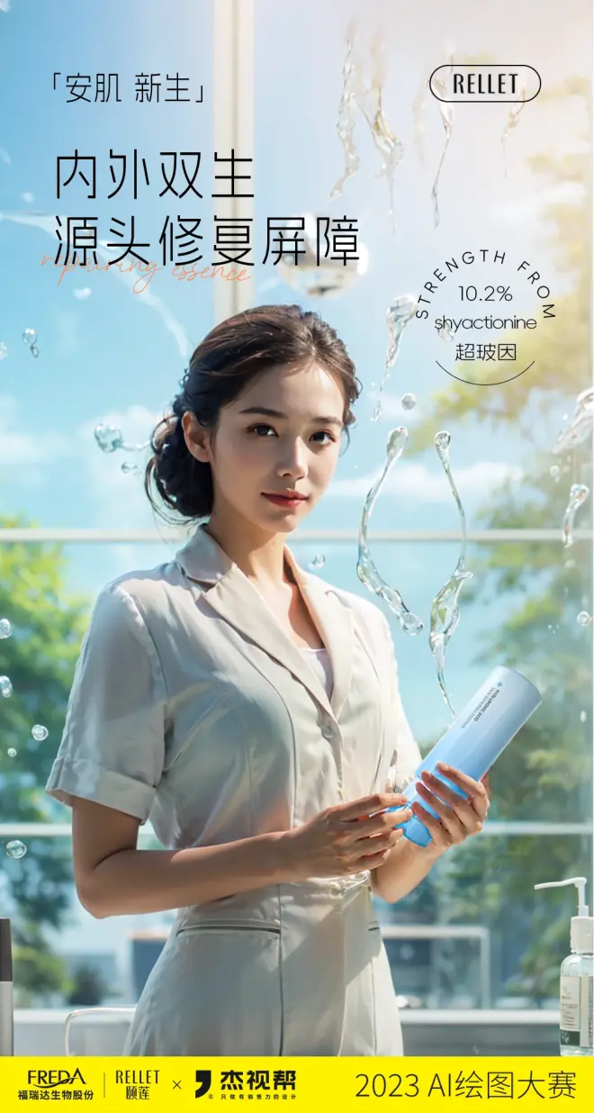 上个月,我们联合颐莲发起了一场AI比赛,围绕颐莲产品“安肌精华”进行商业产品AI海报图创作。经过为期一个月的创作,我们共收到了800+参赛作品!