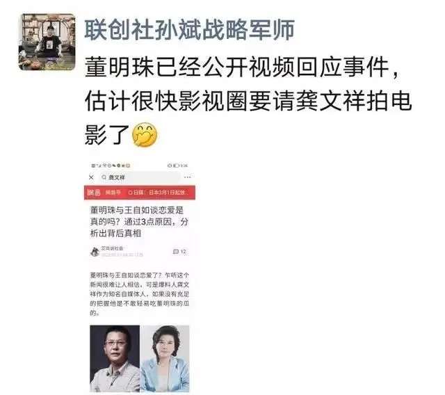 娱乐圈就是这样真真假假,龚文祥爆料董小姐绯闻,董小姐又亲自站出来辟谣,互联网流量就这样产生了。