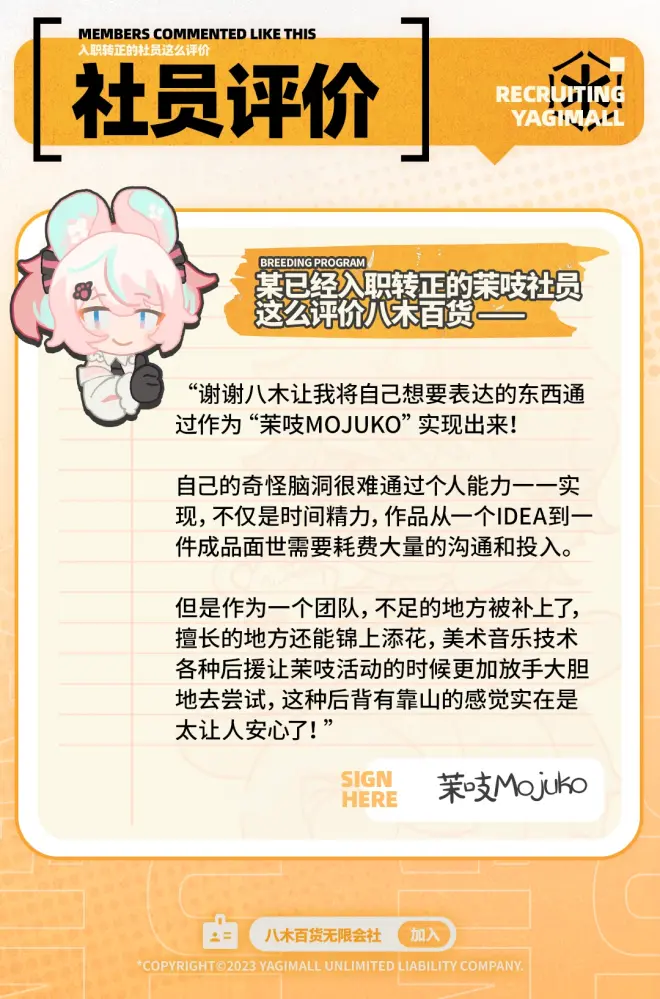 如果您已经拥有自身形象以及一定的粉丝群体,想加入我们却又不希望放弃当前的角色形象,可以点击下方专栏了解更多关于八木百货【特约社员】的详情。
