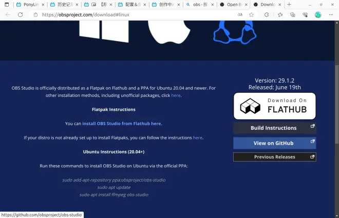 进入OBS官网,点击Linux: