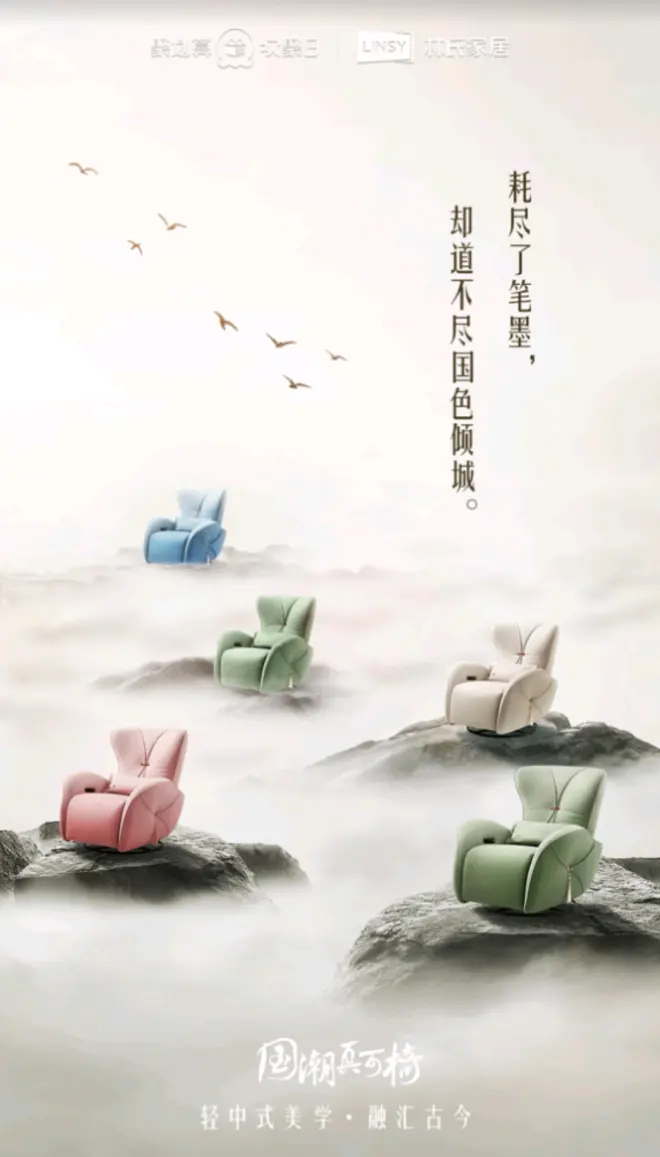 前不久,林氏木业携手聚划算欢聚日在橘子洲拱极楼举办的“国潮真可椅”主题新品发布会,5大汉服圈顶流KOL“@四月、@施梦露、@卢卓就是小灿、@参商、@杨馥羽”作为“国潮星推官”携手多位汉服爱好者参与助阵林氏木业的欢聚同袍盛会。着华服,畅游古今创意家居场景。事实上,林氏木业观察到,如今年轻消费者已经将不少传统的文化精华融入自己的生活中。为填补市场上国潮沙发爆款较少的空白,林氏木业特意提炼传统汉服的文化内涵及美学,与当代年轻人的生活方式、现代家居美学深度融合和创新,打造出新的爆款产品“国潮真可椅G500”。 这款功能单椅在外观上没有使用常见的国潮图案,而是将汉服的美感重塑于产品的结构和细节。林氏木业以传统汉服为设计灵感,将对襟、流苏、腰间点睛的“衣扣”等汉服元素完美融入产品中,在色彩上也汲取中国传统色彩。此外,产品上还融入了“铜钱纹”、“圆寿纹”、“葫芦纹”纹样,对应“财”、“寿”、“福禄”等文化。由此可见,林氏木业的这款国潮功能单椅产品整体既有汉服的灵动飘逸,又富有吉祥寓意和文化内涵,林氏木业希望以此突破对功能单椅造型的想象边界,让它成为年轻人诗意生活中的一部分。