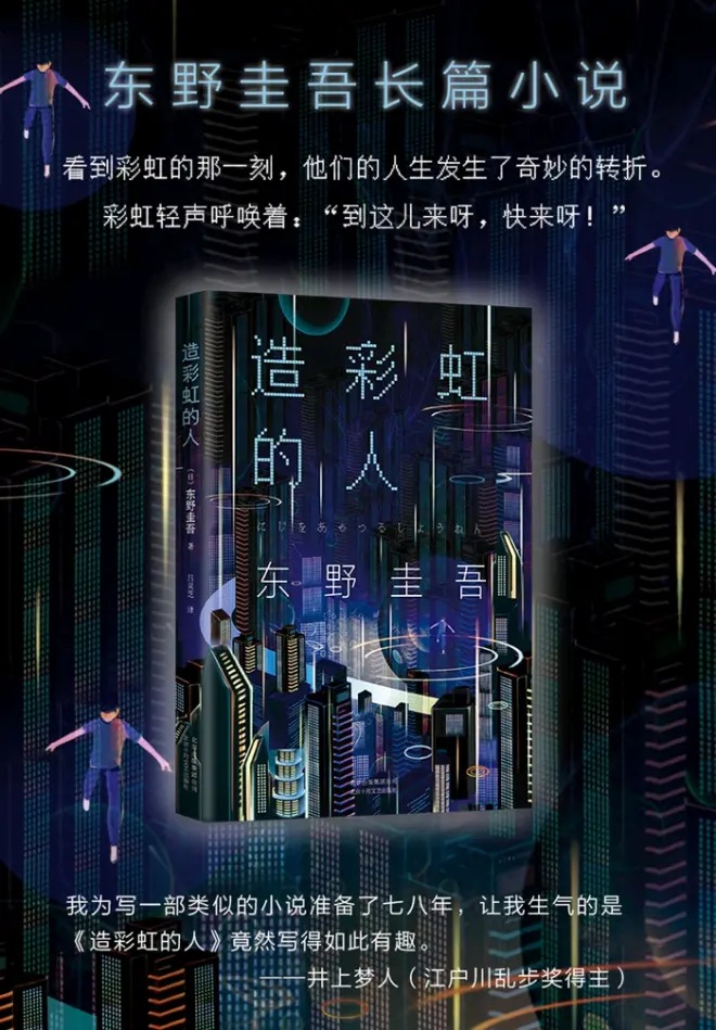 《造彩虹的人》,一名天才少年“创造”了一种叫“光乐”的艺术,顾名思义,用不同波长的光搭配成曲,形成类似音乐的艺术。并给社会带来了巨大的影响。 在书中我们看到了东野圭吾超然的想象力,用比声音复杂的多的光编写成曲子,生物光与气功、宗教的关系。或许现实生活中不存在光乐这种艺术形式,但是和它类似的给社会带来巨大变革的技术数不胜数。看到光瑠的遭遇,我们能够认识到生物的进化,社会的进步受到的巨大阻力。 同时书中也向我们展现了人民大众才是历史的创造者,但杰出的人物在历史进程起重要作用。