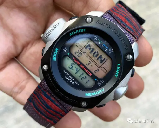 在卡西欧官网的登山系列发展史上,从1994年初代ATC1100发行至今已经有20多年的历史。期间从第一代三重感应器发展到第三代,并且从纯数显到现在的双显,期间有着不计其数的型号。其实官方纳入并承认的发展支线背后,有着相当多的衔接系列并没有提及而早已被人们所遗忘。