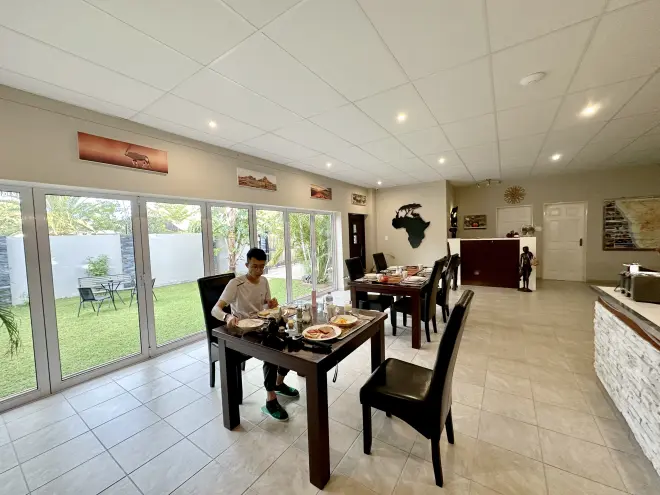 前一晚,我們選擇住在「楚梅布 Tsumeb」城市,因離今天我們要前往「埃托沙國家公園 Etosha National Park」東門入口處較近,而埃托沙獵遊呢,是我這趟納米比亞之旅最期待的行程之一。 民宿基本上都會供應早餐,我們都會吃超飽,因公路之旅根本沒時間午餐 (趕路啊),簡單車上吃麵包、水果果腹。
