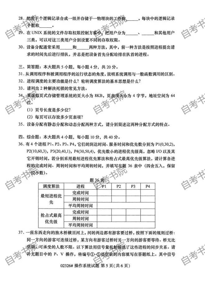 » 2023年4月自考《02335网络操作系统+02326操作系统》真题和评分参考