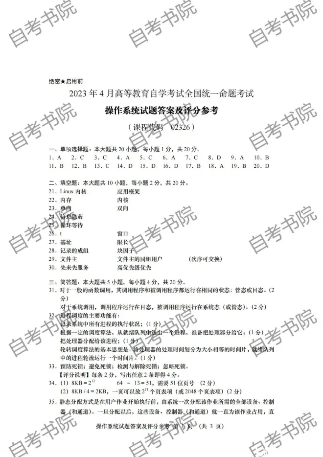 2023年4月自考《02335网络操作系统+02326操作系统》真题和评分参考的评论 (共