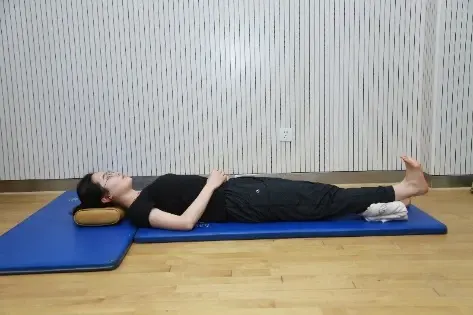 训练要点:平躺在瑜伽垫上,双手放在身体两侧,膝关节伸直,双脚用力向上勾脚,保持5秒,然后用力向下绷脚,保持5秒,训练时注意节律适中,不宜过快。
