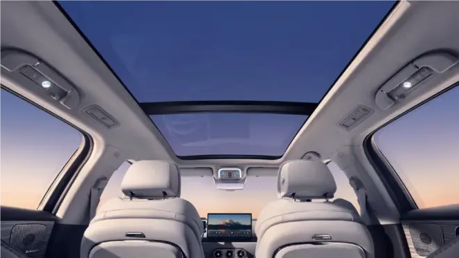 新车配备专属环绕声丹拿音响,并配备了K歌模式和游戏模式,适合全家人旅行途中放松娱乐,全景天窗全系搭配电动遮阳帘,保持车内明亮通透的同时也避免了夏日酷晒。另外,新车最高6kW V2L的对外放电功能非常实用,可在野外使用电磁炉、烧水壶以及空气炸锅等用具,还可用于投影仪放电影。
