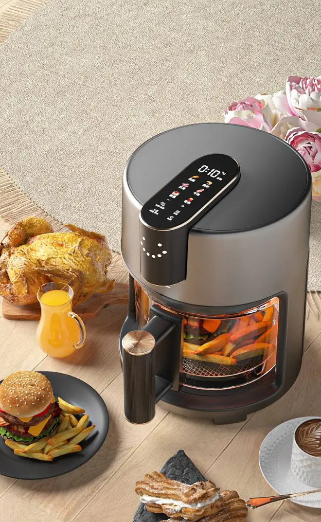 5.容量大小: 容量是衡量空气炸锅大小的指标。选择合适的容量取决于您家庭的人口数量和烹饪需求。常见的容量选项包括2升至5升不等。较小容量适合单身或小家庭,而较大容量适合多人用餐或需要大量烹饪的情况。一般来说,5L左右的空气炸锅就是非常均衡的选择,能够适应各种情况,同时对空气炸锅的利用率也比较高。