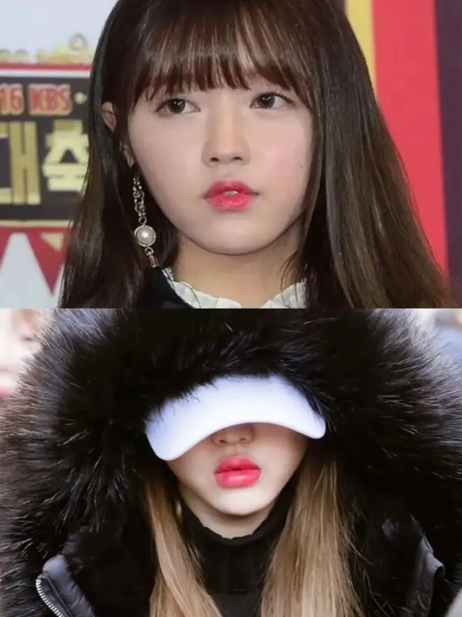 其实可以看看YooA以前的照片,从幼儿时期,出道前未包装的素人学生时期,到出道后有了艺人妆造的时期,YooA确实是易肿的体质,唇部就比较明显。