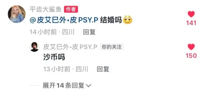 另外,女友@PsyP结婚吗,PsyP回:沙币吗