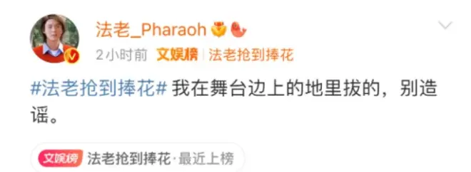 法老还上了热搜,他说,自己的花是在舞台边上的地里拔的。