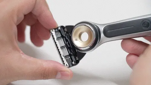 同时吉列热感剃须刀的刀头也是可替换设计,不过卡扣要比极光系列紧上一些。