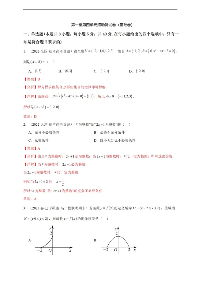 » 第一至第四单元滚动测试卷(基础卷)-2024年新高考数学一轮复习讲义之讲-练-测(解析