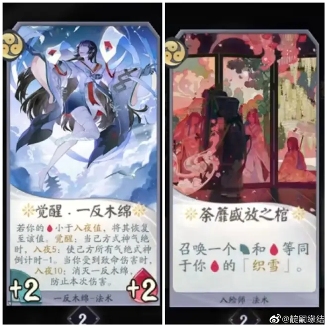 二者同为保护类的式神,其最高稀有度的卡牌又都与牌手生命值相关;一反木绵的“代替死亡”,入殓师的“复制生命之墙”……几乎与他们二者在保护生命中最重要的那个人的表现完全一致。也就是——