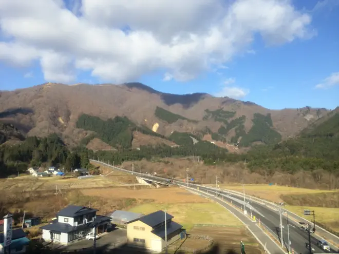 开阔的窗景,照片中的公路是鸣子温泉一带的47号国道。