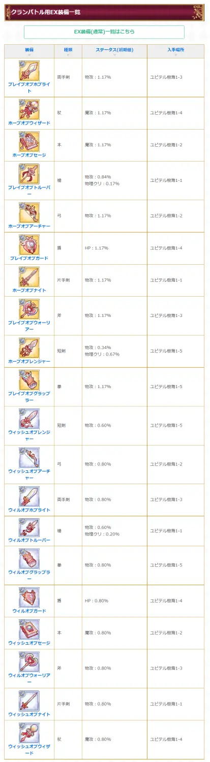 ※日版2023年2月28日更新后新增的团队战EX装备暂无收录。