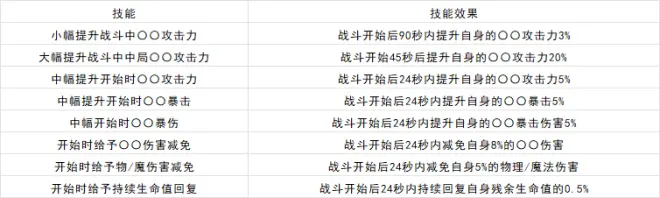 状态从第一个依次为:稀有度,有无技能,物理攻击力,魔法攻击力,物理防御力,魔法防御力,生命值,物理暴击率,魔法暴击率。
