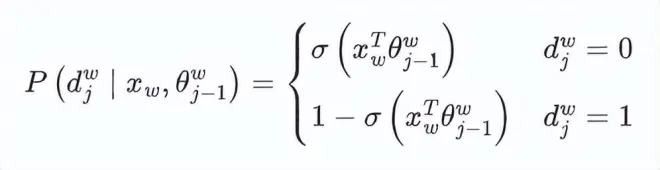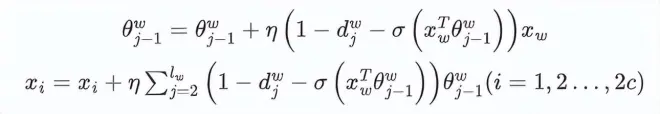 其中 是当前内部节点的词向量, 而 是我们需要从训练样本求出的逻辑回归的模型参数。