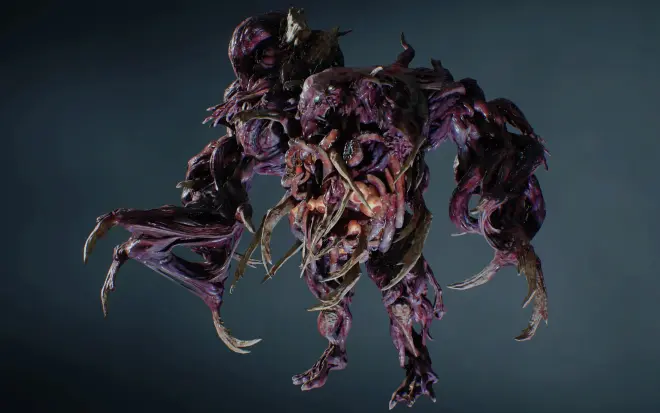 至于第三阶段的『G-3』,其模样更加凶悍了,它是里关主角在往研究所的大型升降梯上面碰到的。原先那「粗勇」的双手已经向后伸张,形成类似翅膀的「后手」;在『G-2』时原本位于左边腰部的第二只左手,如今也正式长了出来,右手也是一样,于是就形成了第二对双手;大腿上方也长出了一直眼睛,跟前面所说的一样拥有视力;除此之外,胸口还出现了一堆不知用途的「刺状装饰品」。我第一次看到他的印象是「三头六臂的大怪物」,不晓得您是怎么觉得呢?