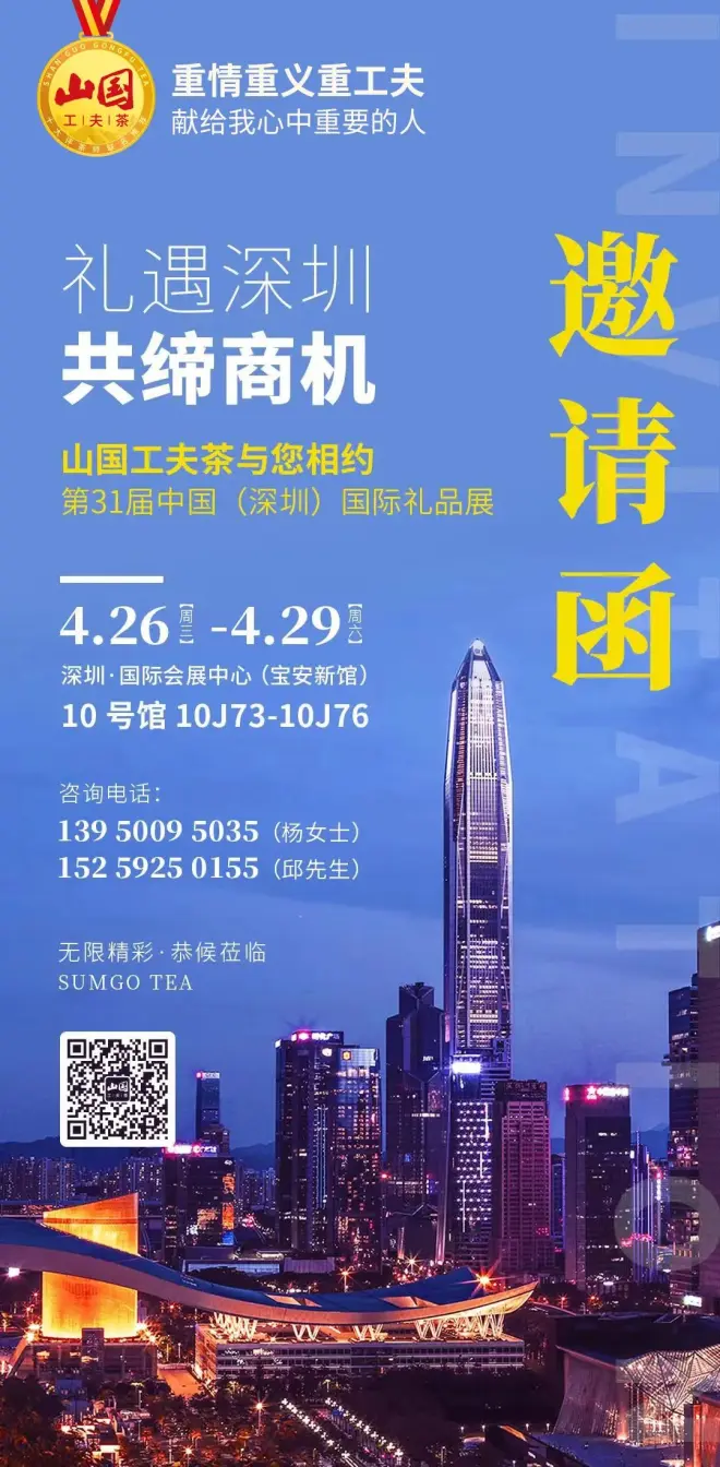 此次展会是山国工夫茶2023年礼品展的第一站,也是2023年布局全国礼品市场的第一战,旨在充分利用深圳礼品展这个绝佳国际大平台,马不停蹄,开启新一轮招商加盟与经销合作强“攻势”,推动共同创富,共同助力中国茶文化传播。