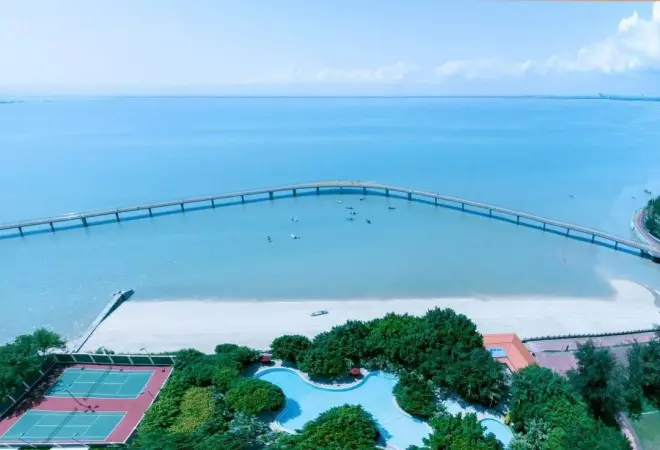 为了能让更多来到北海的旅者能够舒适地享受在这里的时光,北海香格里拉拥有一片私人沙滩。更是建造了一条海上栈道,每位入住北海香格里拉的贵宾都可刷卡步入栈道,向着夕阳走去。