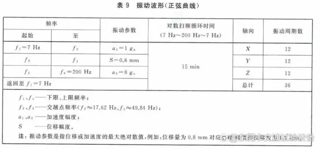 将充满电的电池紧固在振动试验台上,按表9中参数进行正弦振动测试