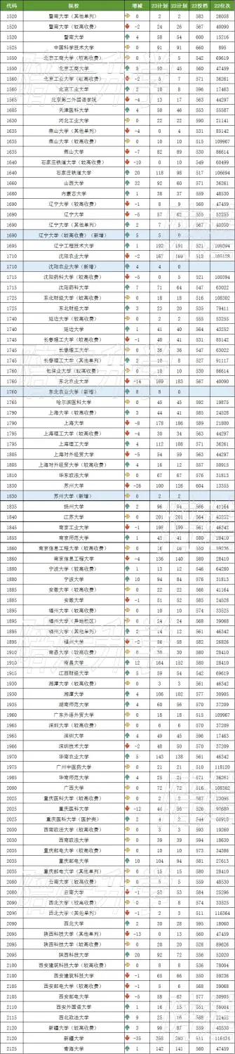 » 全国高校2023年本科一批二批在河南招生计划、投档分与位次与上年对比变化较大
